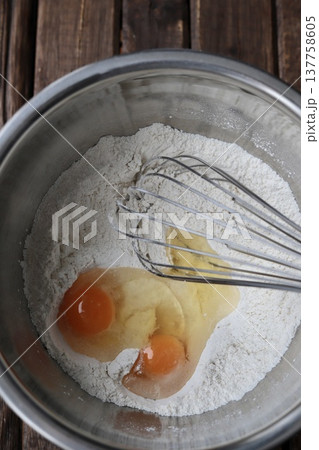 ボールに入れたホットケーキミックスのイメージ (写真素材)