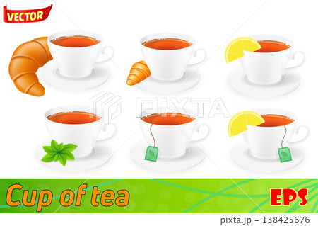 porcelain cup of tea with lemon and mint vector illustration