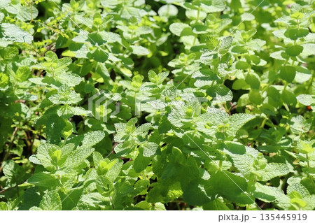 緑の葉のミドリハッカ(スペアミント)の畑の風景