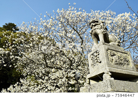 志都岐山神社で満開のミドリヨシノ(日本 山口県 萩市)