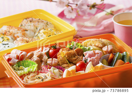 カラフルなお弁当箱とおかず/お箸なし(ベクターあり)