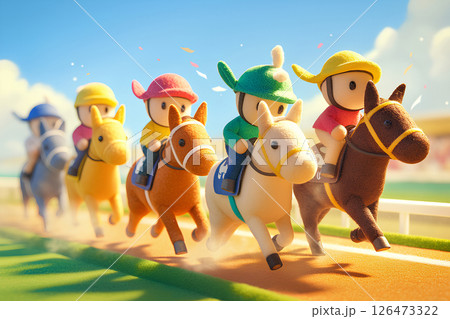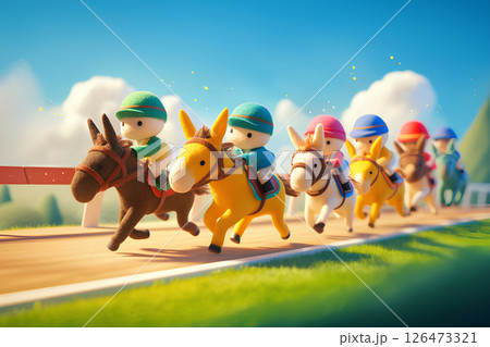 フェルトでできた可愛い競馬シーン(3Dイラスト)