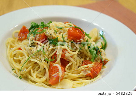 釜揚げしらす、ミニトマトと青紫蘇のスパゲティ