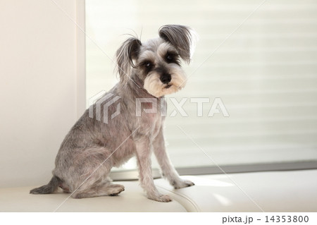 見上げてアイコンタクト ミニシュナ (ミニチュアシュナウザー)