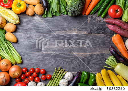 いっぱいの野菜。野菜の集合写真、ベジタブル、ヘルシーイメージ。青梗菜、小松菜、トマト、茄子、キュウリ