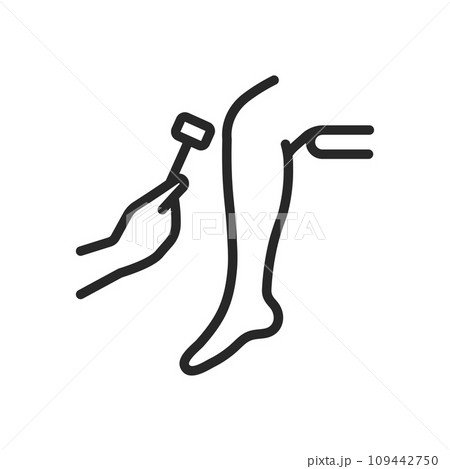 Reflex Test Icon. Thin Line Illustration of Neurological Knee Jerk Assessment with Reflex Hammer for Medical and Healthcare Use. Isolated Outline Vector Sign.