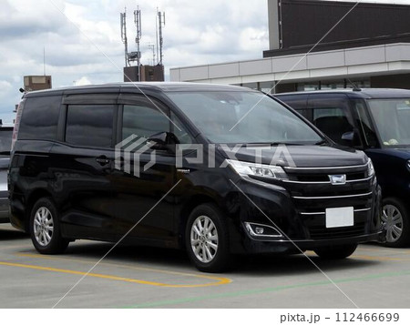駐車場に並ぶ乗用車(トヨタ・ノア 4代目)