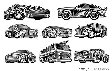 Muscle cars and vintage transports for logo and labels. Set of retro old school auto service