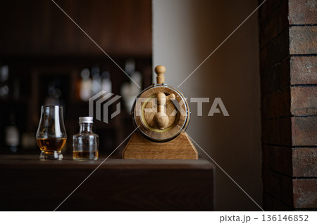 樽熟成イメージ ウイスキー コピースペース Bar 小物 雑貨 ミニ樽 オーク ミズナラ樽