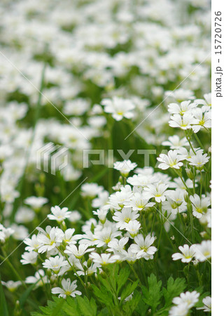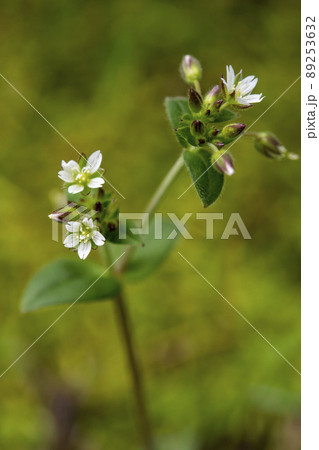 初夏のイメージ 白い5枚の花弁を持つ可憐な白耳菜草(シロミミナグサ)のクローズアップ