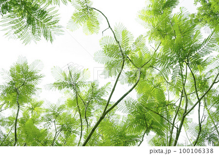 ジャカランダ・ミモシフォリアの葉と青空