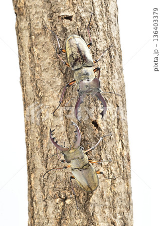 木に止まるクワガタムシの風景(オスとメス)