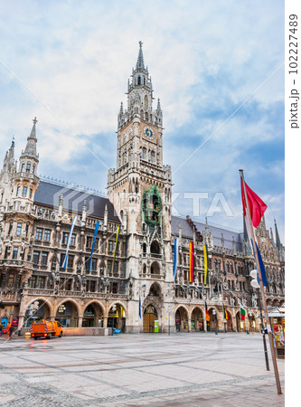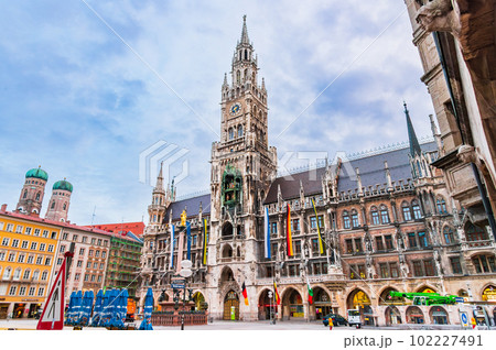 ヨーロッパのドイツ連邦共和国 バイエルン州の州都ミュンヘン 市中心のマリエン広場に面する新市庁舎