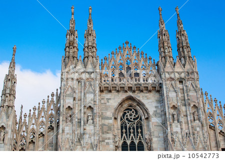 青空に聳え建つミラノ大聖堂(ドゥオーモ)