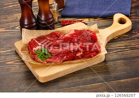 Raw beef flesh for cooking