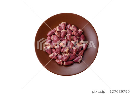 Chicken raw heart, red duck or turkey internal organs as an ingredient