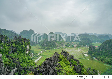 ベトナムのニンビンのムア洞窟からの景色