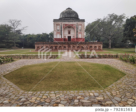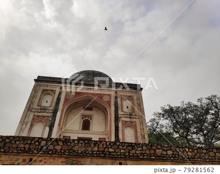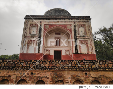 A tomb in within the under renovation Sunder Nursery complex in New Delhi, India on a cloudy cold winter day.