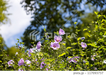 ムクゲ 花 白色 アオイ科 初夏 7月 イメージ