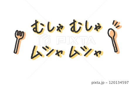 「むしゃむしゃ」の手書き文字イラスト ペン字、落書き風の書体