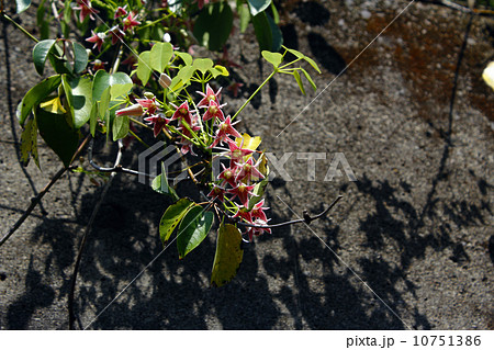 花が咲いた郁子(ムベ)のつると葉/アケビ科・4月