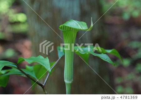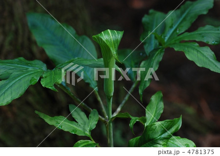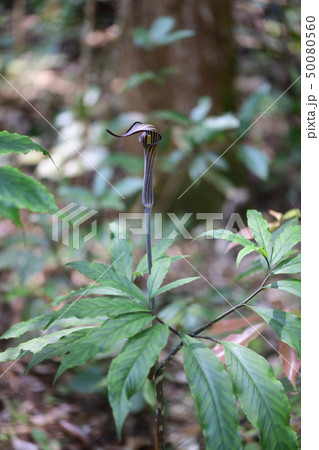林の中で咲く、サトイモ科の植物、マムシグサ