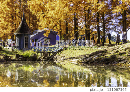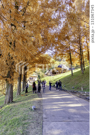 秋のメタセコイアと公園