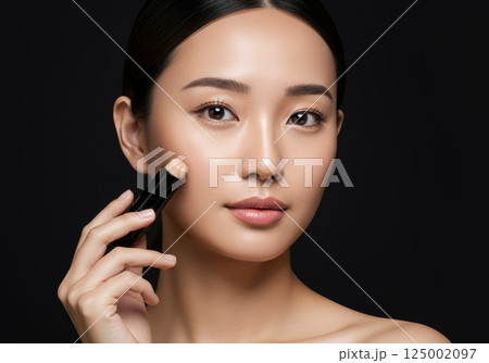 スティックファンデーションを塗る女性のビューティーポートレート(AI生成画像)