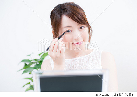 メイクをする女性