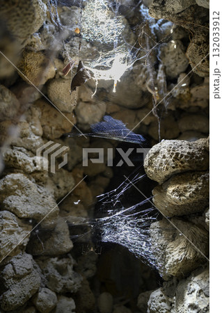 The Dragon Maze made of seashell and covered with cobwebs in Chua Tu Van Pagoda, Cam Ranh, Vietnam