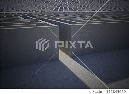 Digitally generated big 3d maze under clouds
