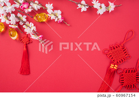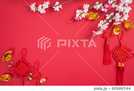 農曆新年 過年 春節 中國結 梅花 頂視圖 Chinese new year flat lay