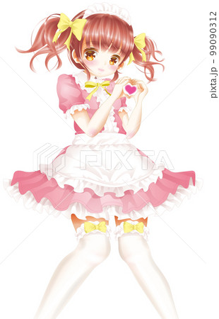 両手でハートのピンクのメイドちゃん