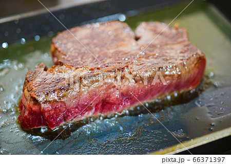 ステーキ肉の鉄板焼き