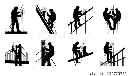 Black Solid Suspension Bridge Welder Silhouettes Set of Six on White Background