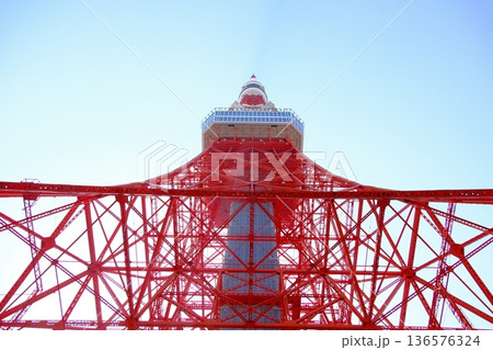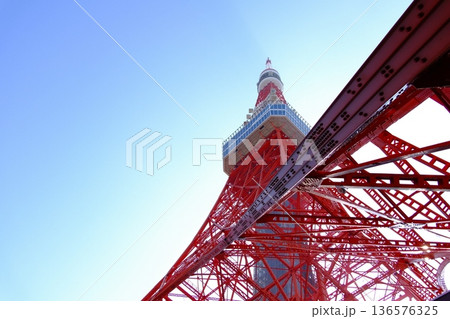 東京・港区 観光名所「東京タワー」を見上げるダイナミックな構図