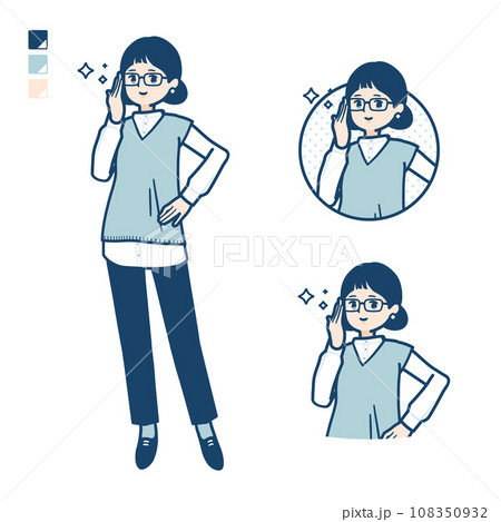 ニットベスト女性が眼鏡をクイっとしているイラスト
