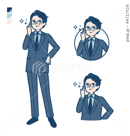 スーツのミドル男性が眼鏡をクイっとしているイラスト