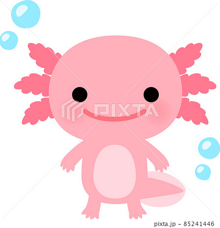 かわいい笑顔のウーパールーパーとあぶく/手描きイラスト素材