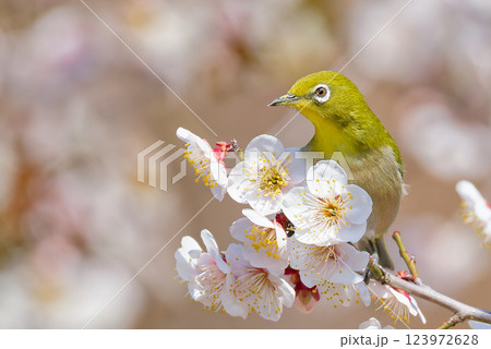 早春イメージ 梅の木に止まるメジロ