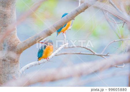 カワセミ 翡翠 夫婦 二羽 高画質クローズアップ素材