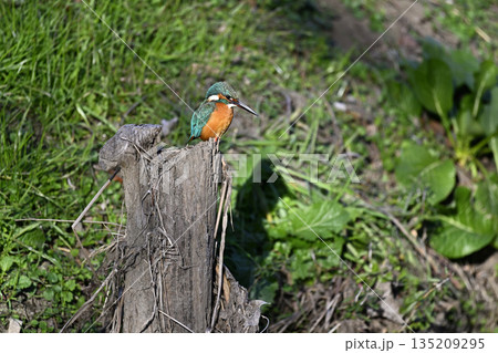美しい翡翠色のカワセミ・枝にとまる野鳥の瞬間