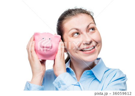 Woman Smiling Happiness Piggy Bank Concept