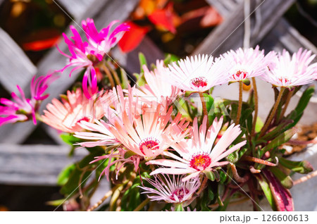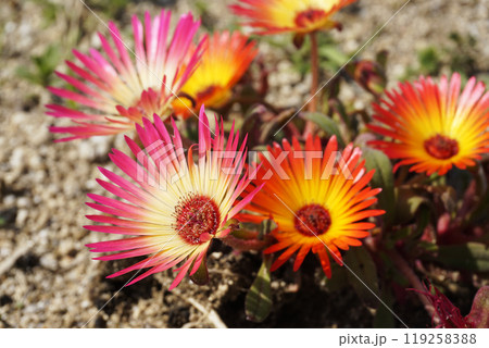 春3月ピンクとオレンジ色のリビングストンデージーの花