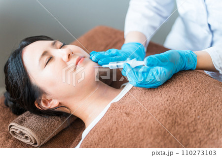 美容外科で施術を受ける女性(注射・ほうれい線)
