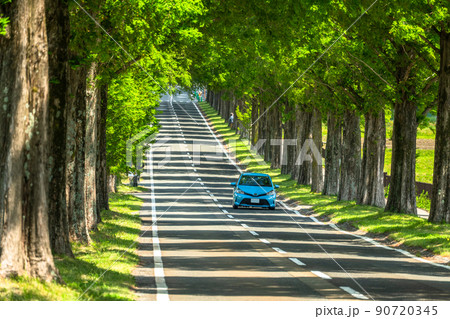 滋賀県高島市マキノ町の夏の緑が美しいメタセコイアの並木道