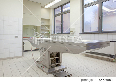Autopsy tables in morgue