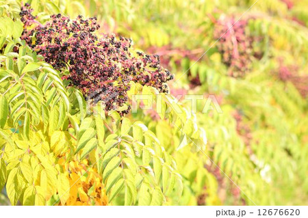 メダラ(雌楤)の木の黄葉と実・タラノキより棘が少ない木