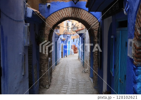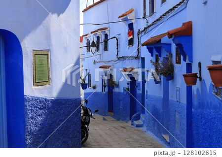 モロッコ リフ山脈の北麓にあるシャウエン 青の街の風景