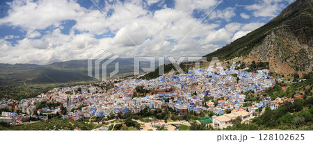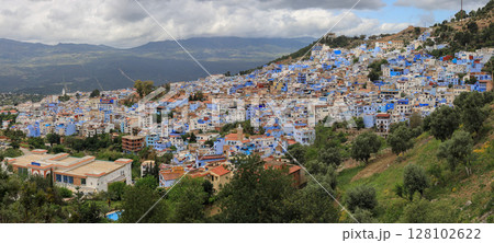モロッコ リフ山脈の北麓にあるシャウエン スペインモスクからの青の街の絶景